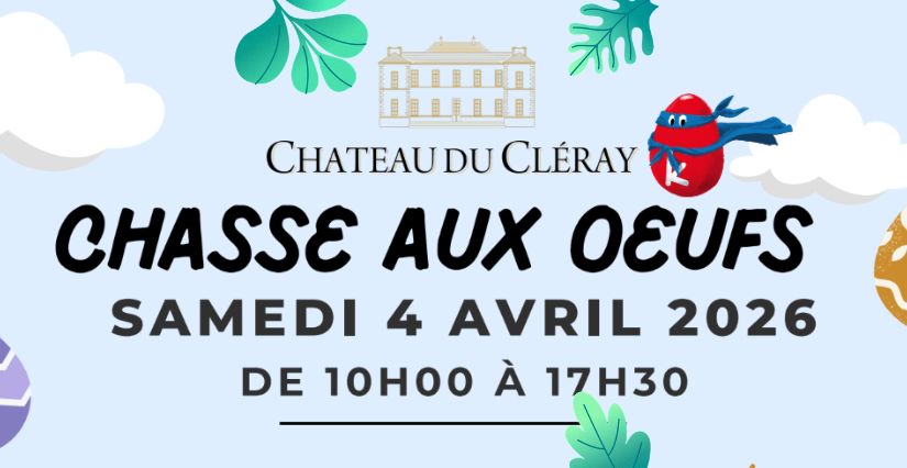 Samedi 4 avril 2026, de 10h à 17h30, venez chasser les œufs de Pâques dans le parc et les vignes du Château du Cléray à Vallet au sud de Nantes.